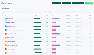 Arraste seu arquivo CSV ou Excel com os nomes e números.